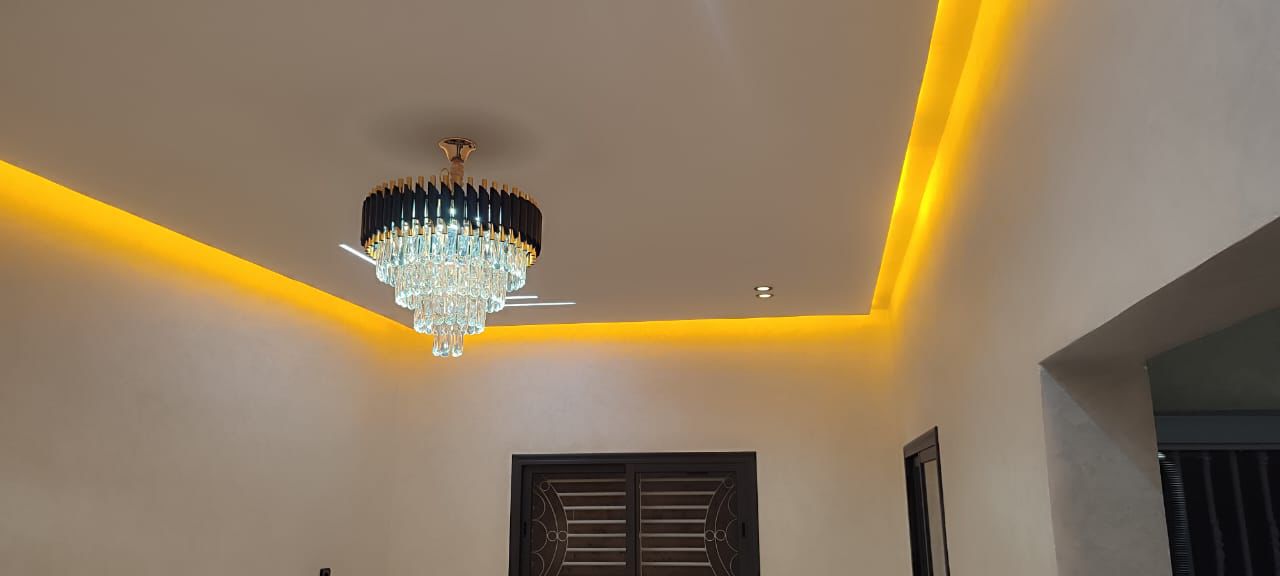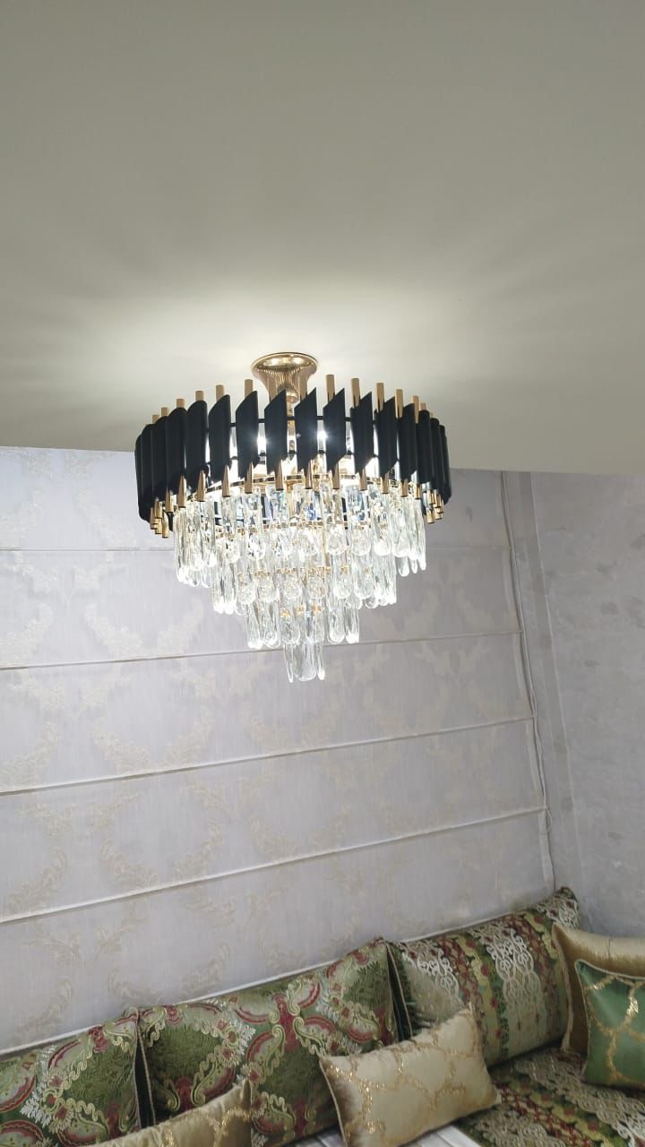 التصميم ديالها العصري كيتناسق مع الديكور وكيخلي الصالون يبان أفخم وأكثر أناقة الكريستال مع ضو الـLED كيعكسو الضوء بطريقة أنيقة وكيعطيو للصالون لمسة راقية